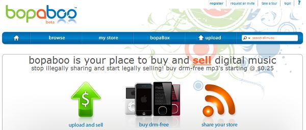 Het lijkt een grap, maar de website Bopaboo lijkt toch echt serieus te zijn met haar business model: een soort marktplaats voor je mp3’s. Je kunt DRM-vrije mp3’s die je wilt verkopen uploaden en tegen een door jezelf bepaalde prijs aanbieden. Bopaboo incasseert een bepaald percentage van de verkoopprijs.